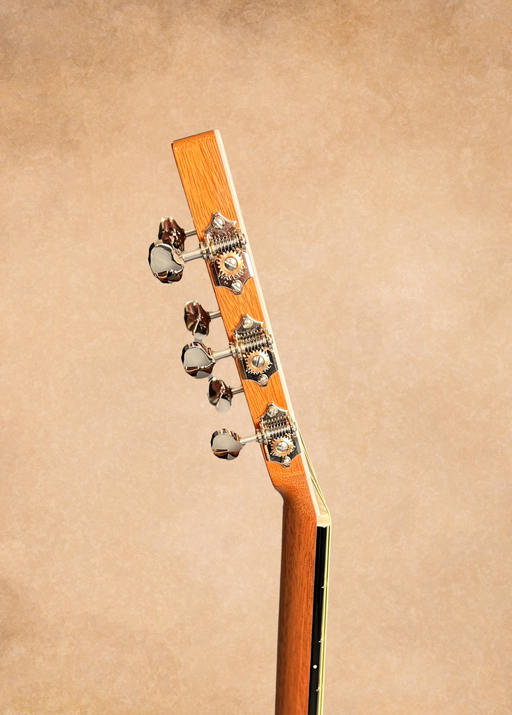 - Ebony pyramid bridge with ebony bridge pins/abalone dots