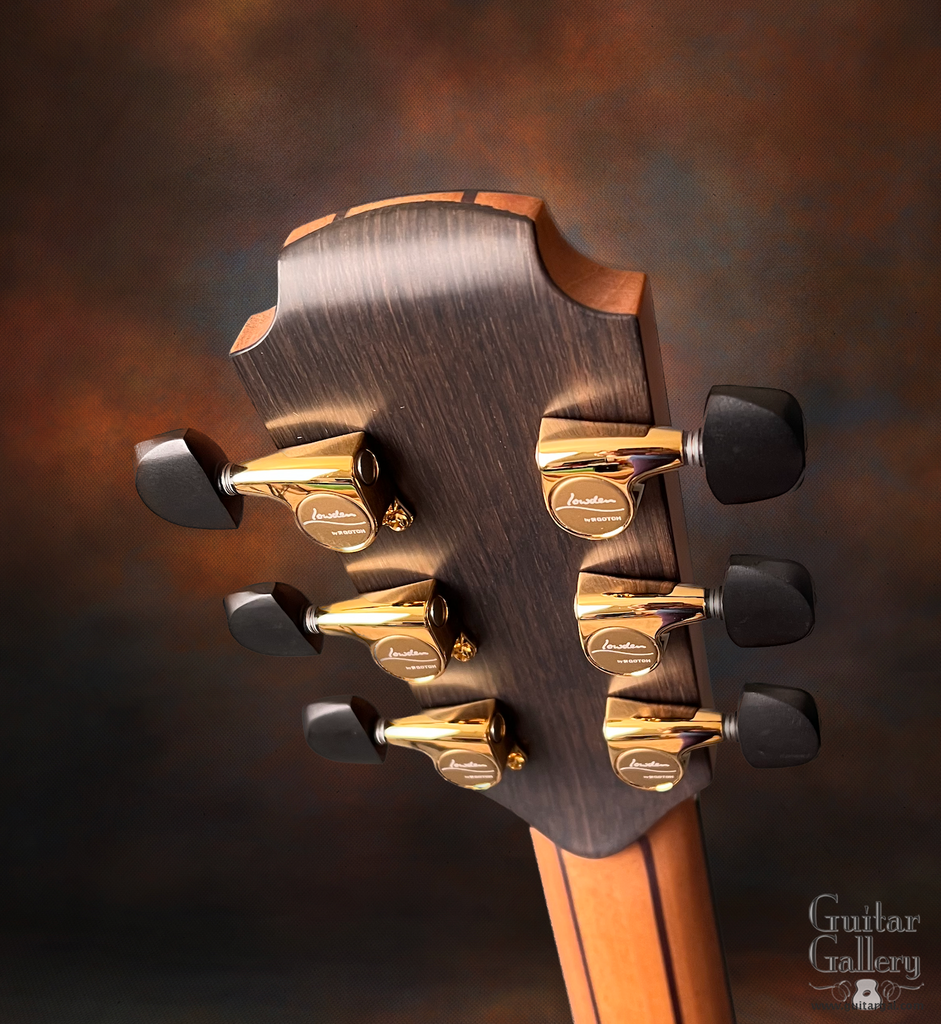 - Gold Gotoh 510 Lowden branded tuning machines with Ebony buttons