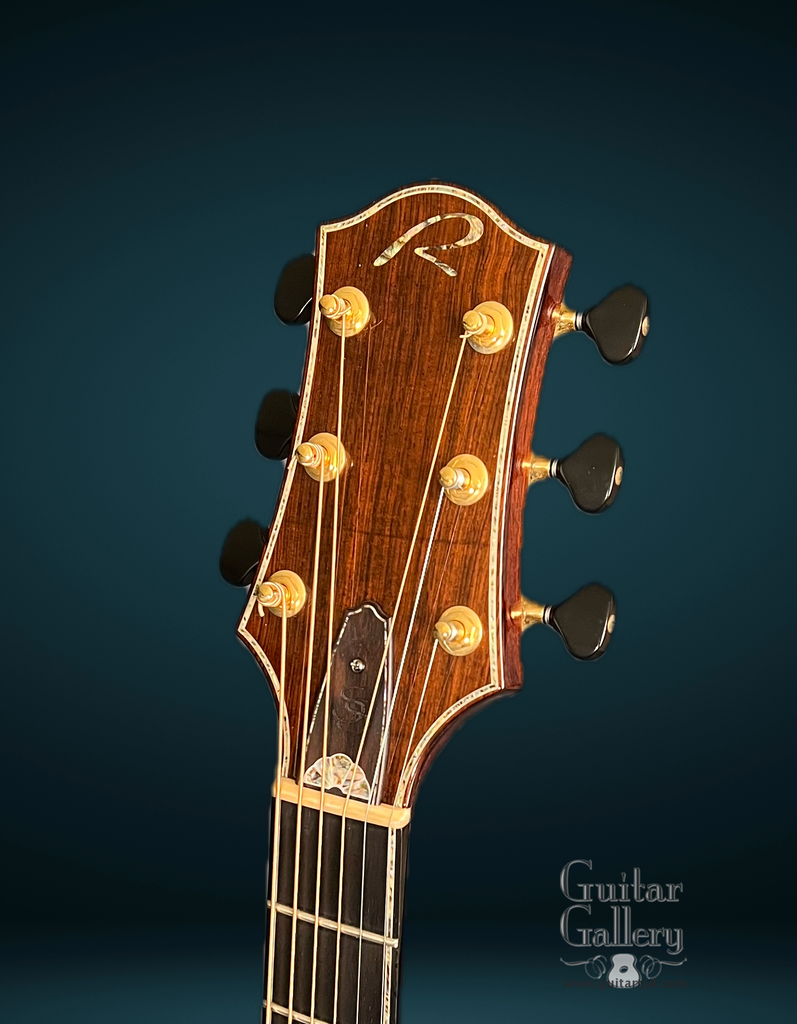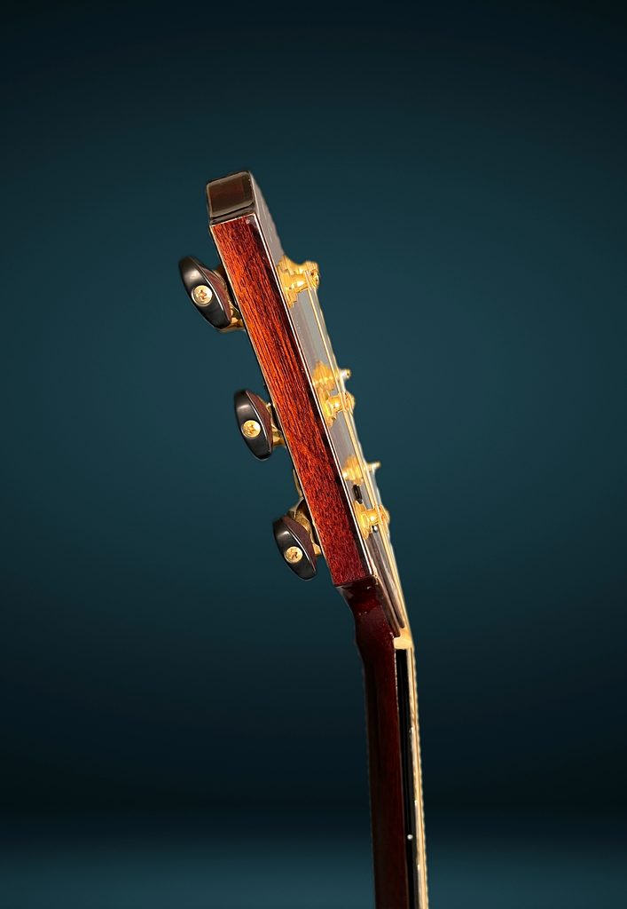 - Gold Gotoh 510 tuning machines with builder logo & faux ebony buttons