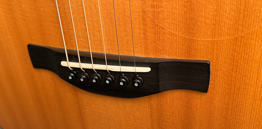 - Ebony bridge with Ebony bridge pins/abalone dots