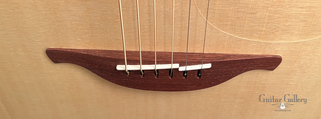- Split-saddle rosewood, pinless bridge
