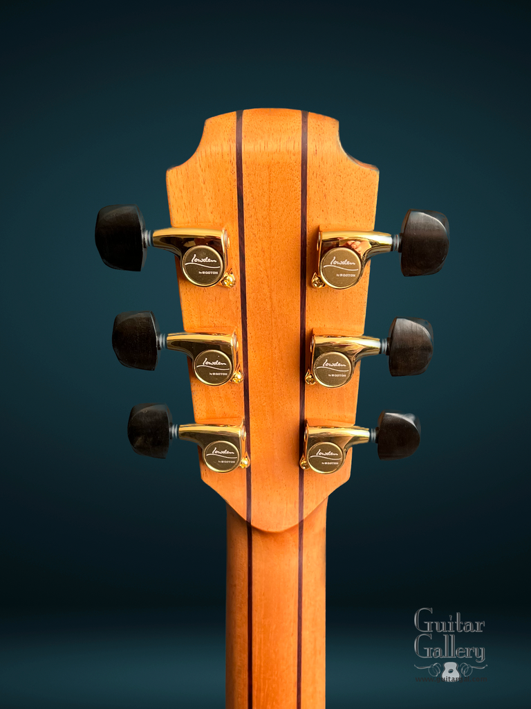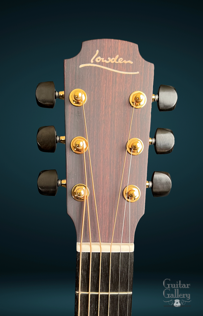 - Gold, Lowden branded Gotoh tuning machines with genuine Ebony buttons
