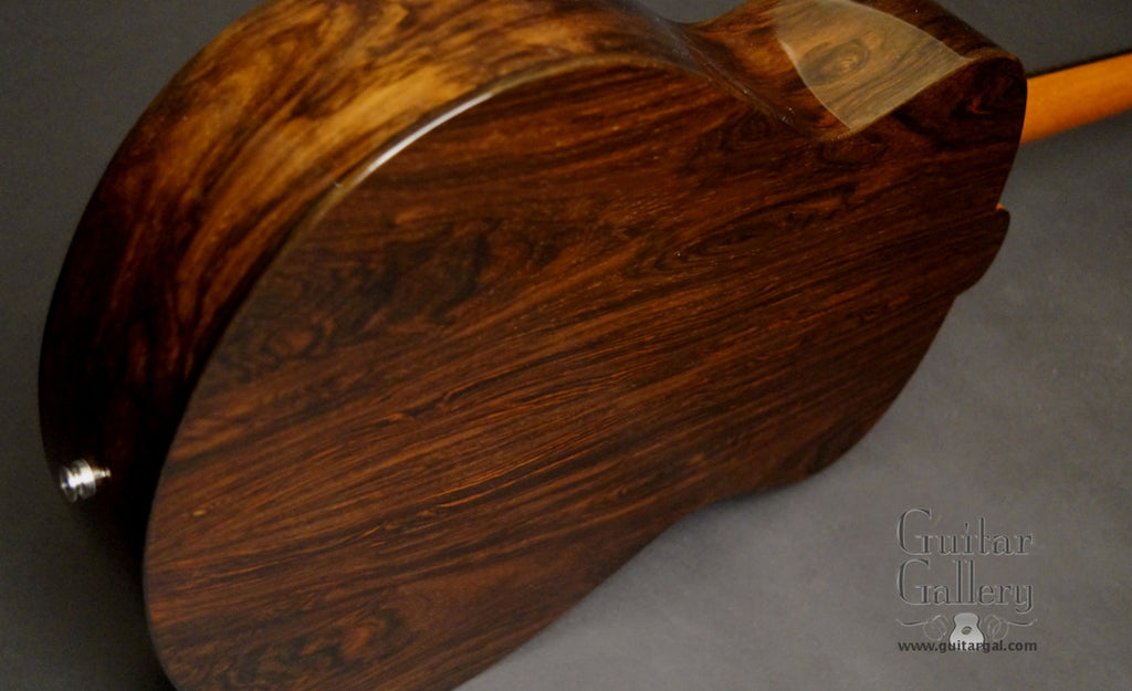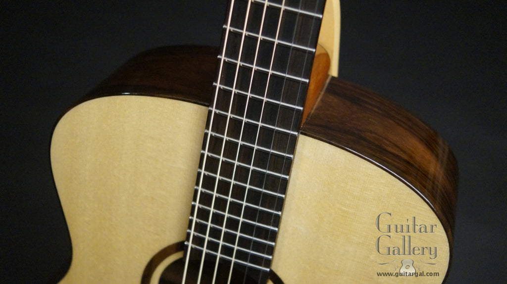The design is my own, a sublime blend of grace and power with the tone and volume to fully engage you and your audience. Of course, the materials and craftsmanship rise above, well aged loft dried tone woods, all hide glue construction, planed joints and premium bone or estate ivory fittings; but the feel of the guitar when played is what will fully captivate you: allowing your musical motifs to flow freely.