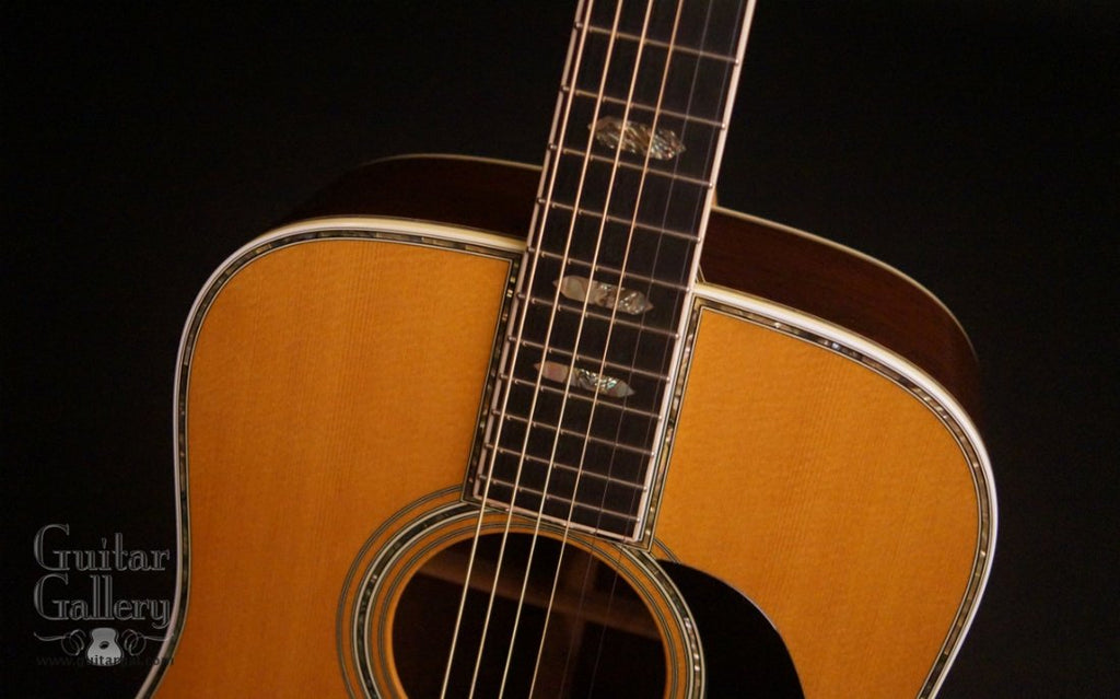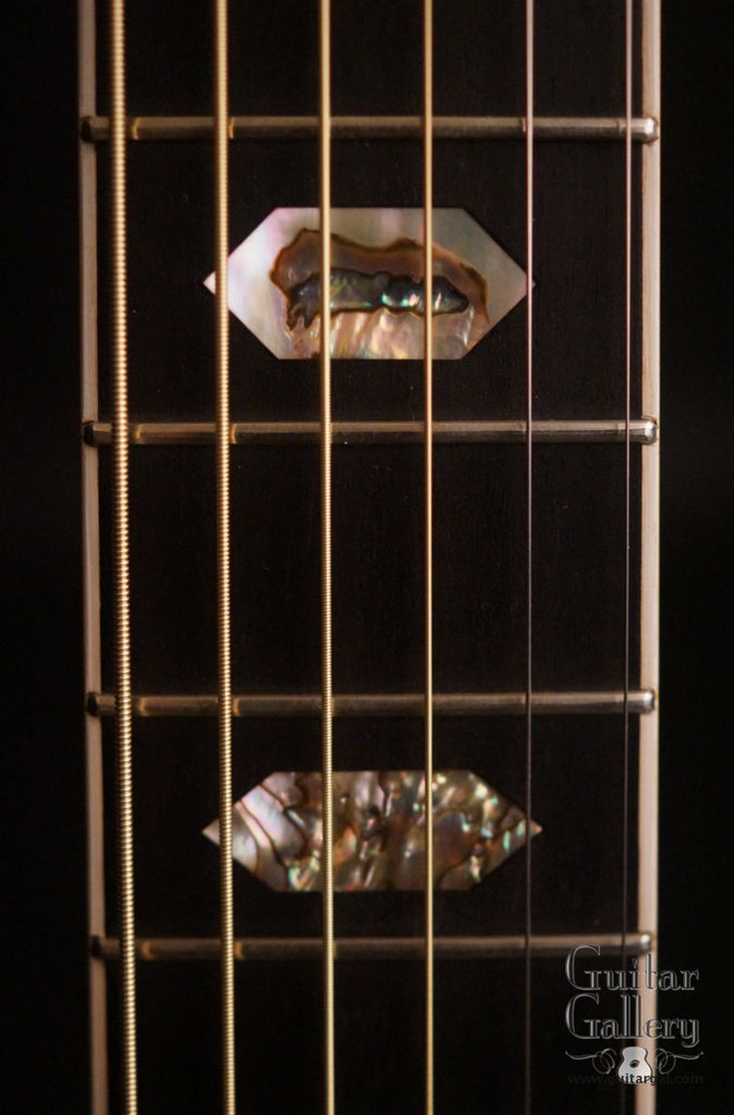 - "45" style adornments with abalone rosette, top trim, back trim, side trim and fretboard perimeter