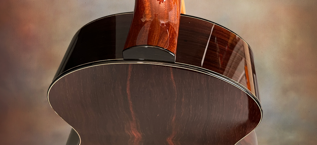 - Sunken Honduran Mahogany neck with gold Mother-of-Pearl side dots
