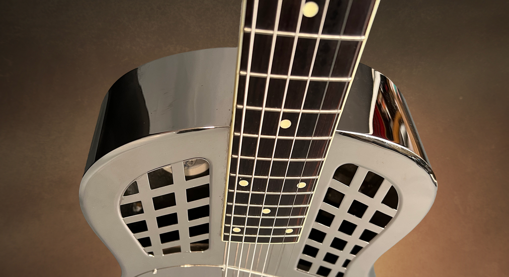 - Brass body with Bright Nickel Finish on this Tricone Resonator