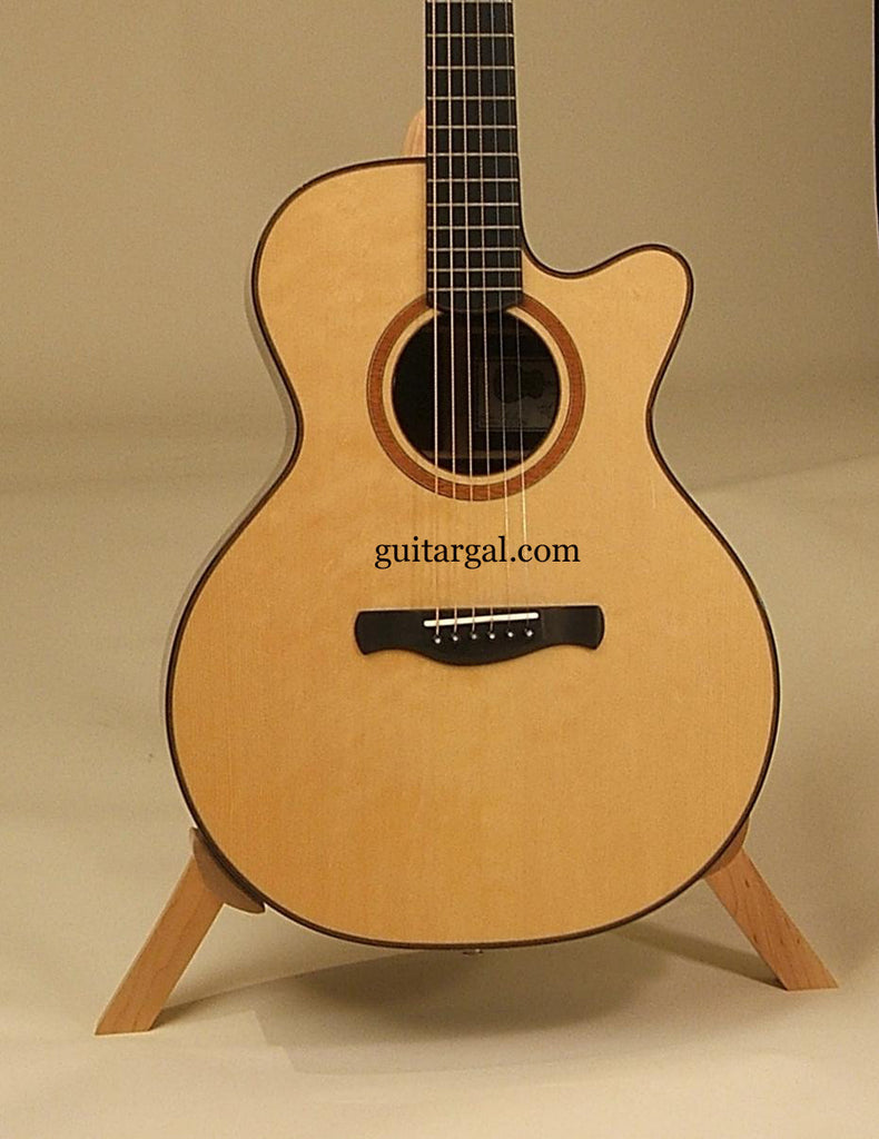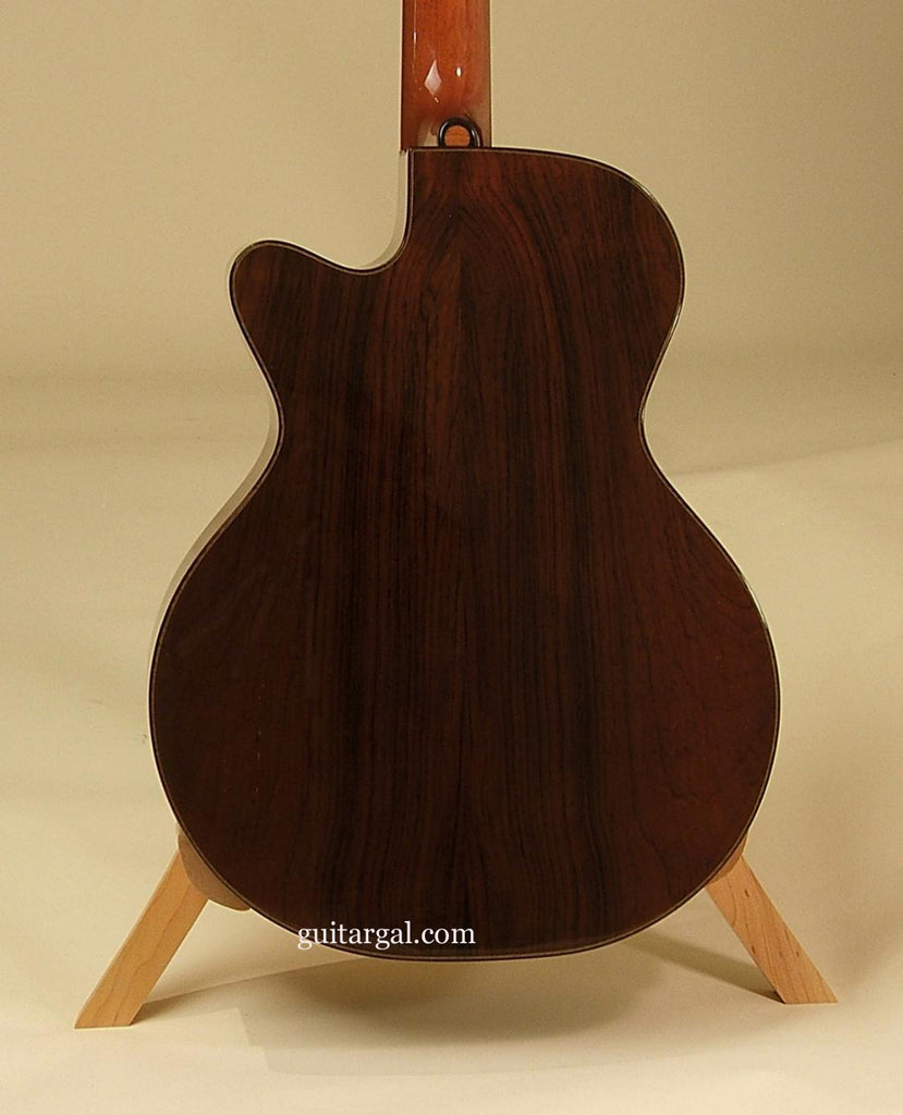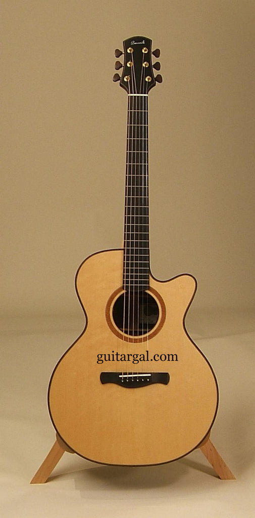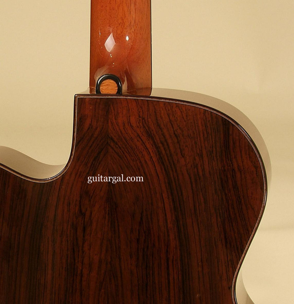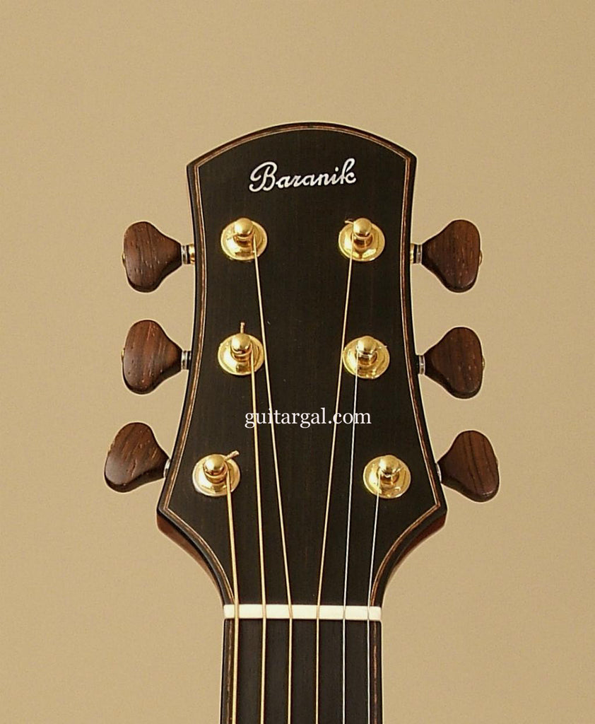 Used, 2003 Baranik CX Guitar Brazilian Rosewood back & sides German spruce top. Soft cutaway. Ebony fretboard with fine purfling lines for accent. Other tasteful accents like the raised volute. This same accent wood (lacewood ?) is used for the heel and tail wedge. Active pickup with no controls. Bound soundhole. The rosette appears to be lacewood. Multiple wood purfling lines encircle the top. The fretboard is bound in ebony. MOP headstock logo. Ebony bridge with ebony pins/abalone dots. Clear pickguard. Wide open, melodic tone.