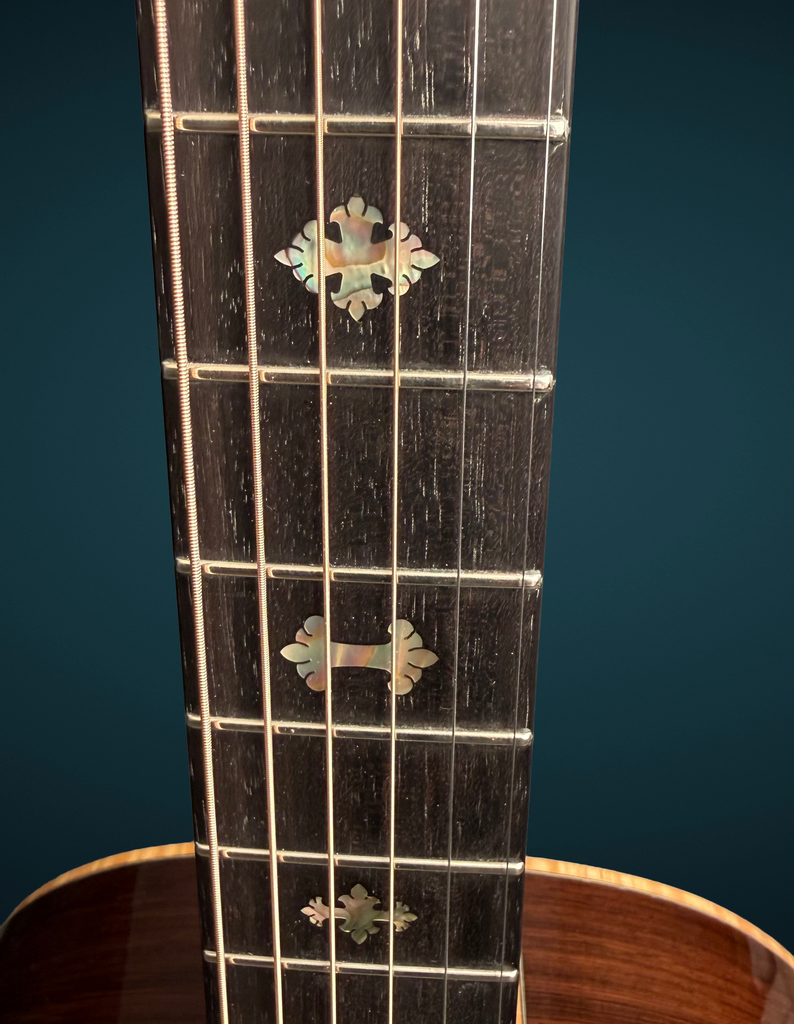 - Abalone headstock Frog logo that looks like a million little diamonds