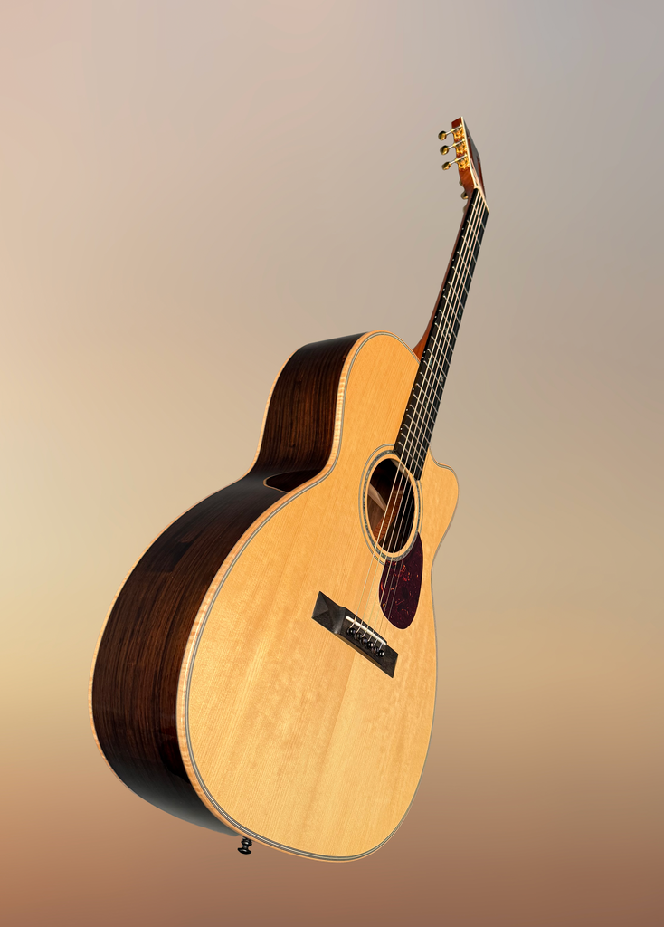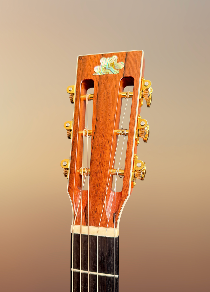 - Chocolate Brazilian rosewood back & sides, with "church door" back