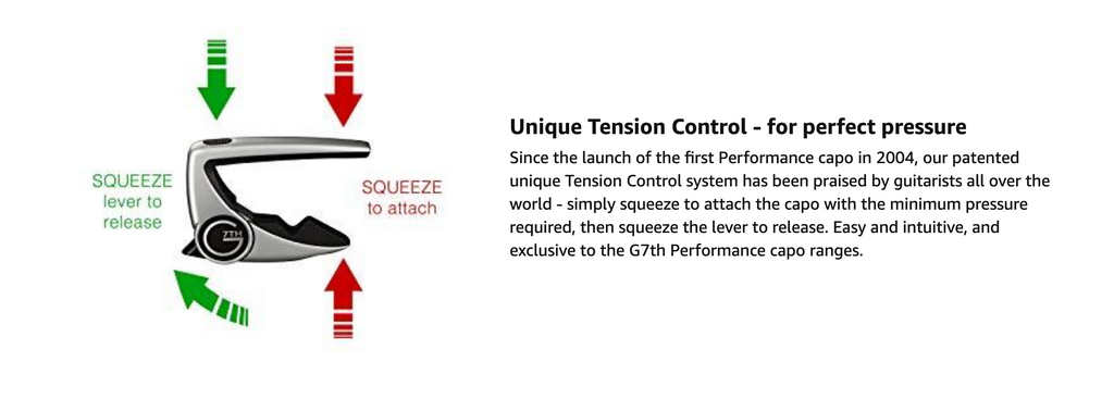 The Performance 2 is so easy to use - simply squeeze on and squeeze off. It can be moved seamlessly from fret to fret, or guitar to guitar.