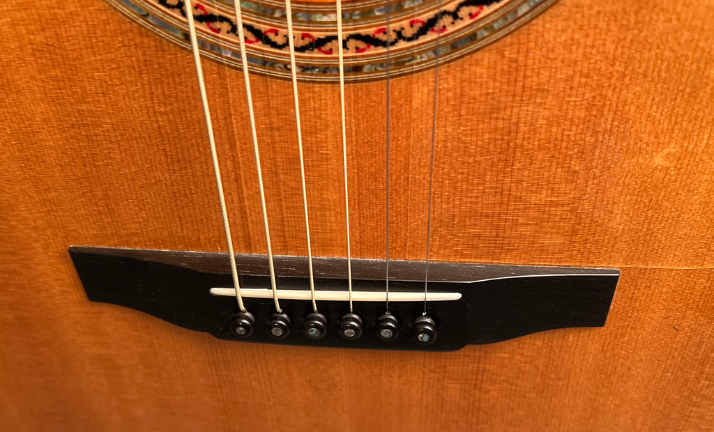 - Ebony bridge with ebony pins/abalone dots