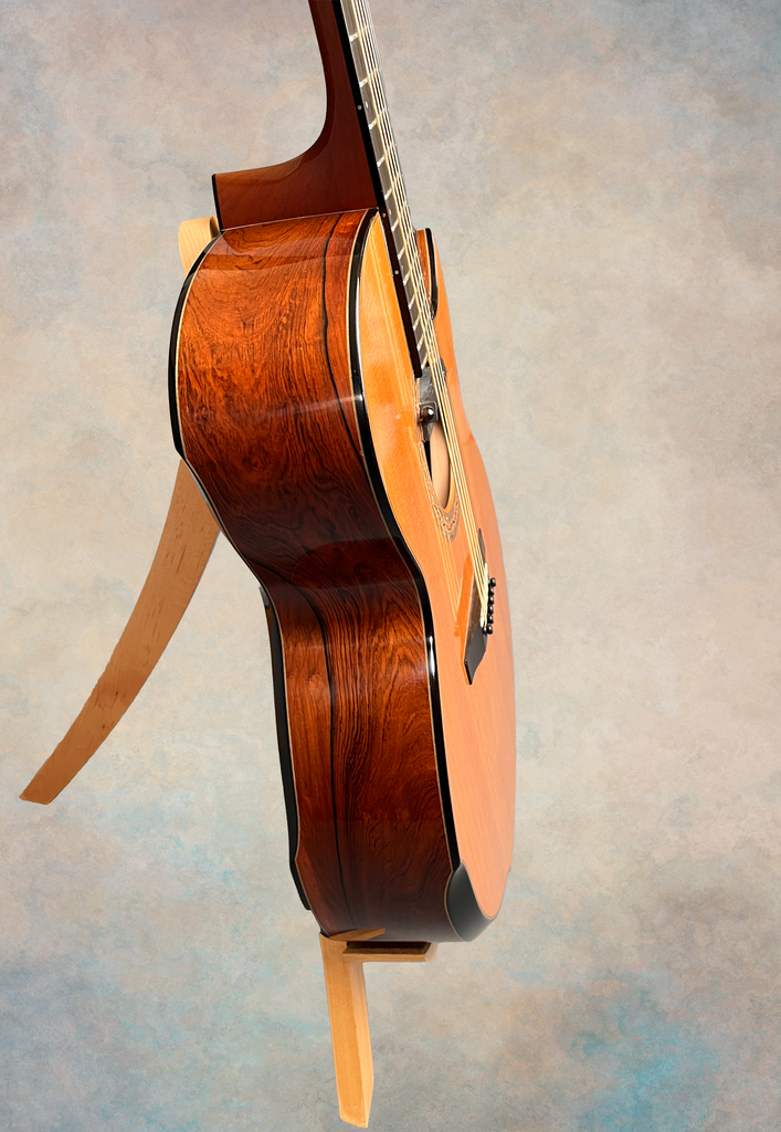 - Beautiful Sitka spruce top with lots of cross-silking (Grit's go-to spruce for tops)
