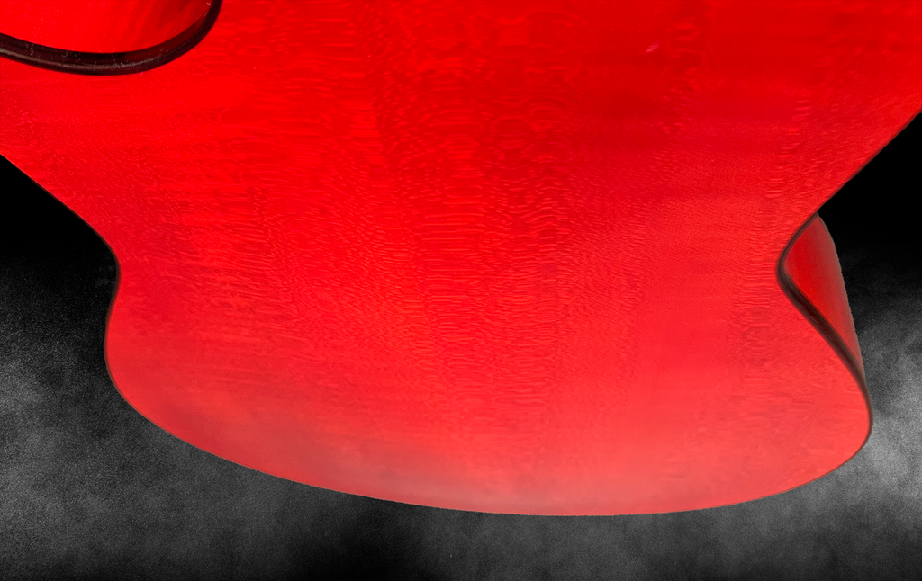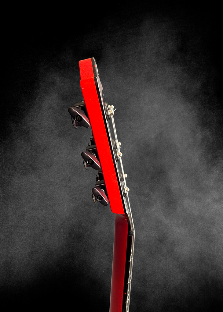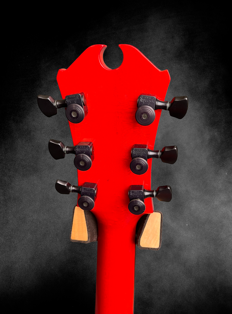 - Ebony headstock faceplate with inlaid Red builder logo
