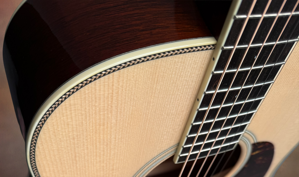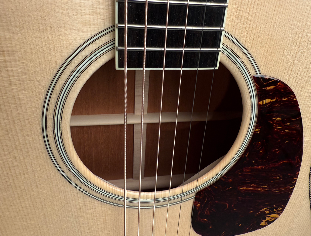 - Multi-ring rosette with larger 4 1/2" sound hole