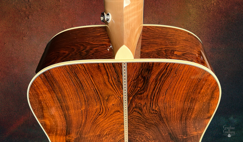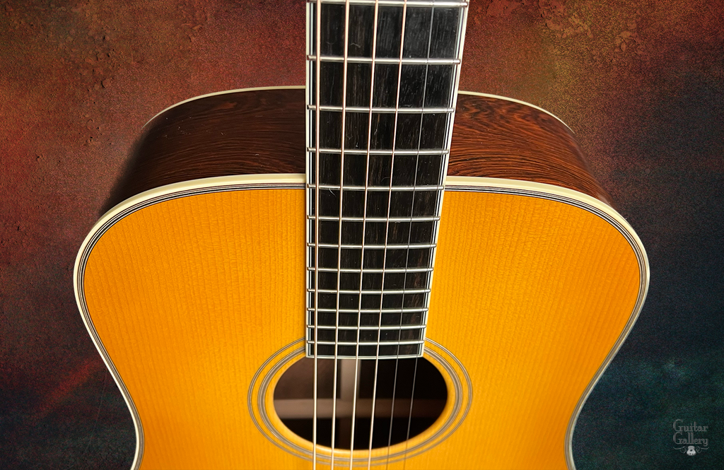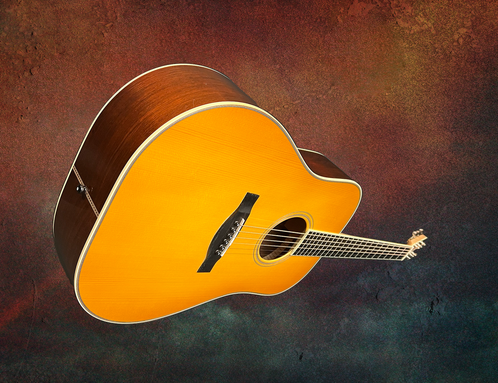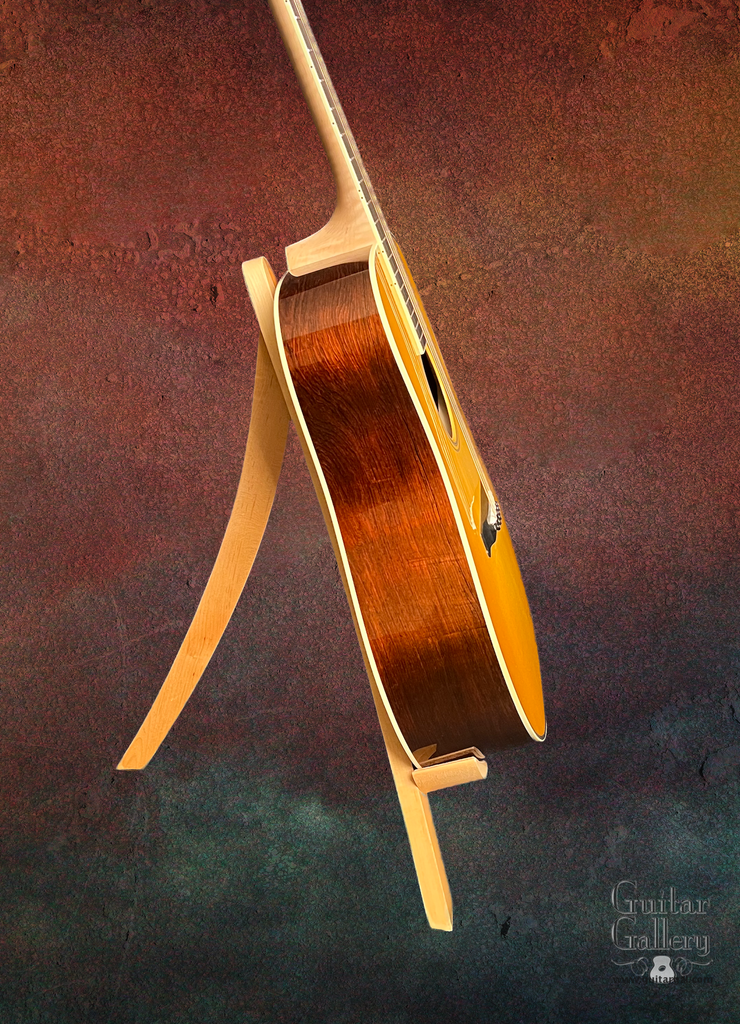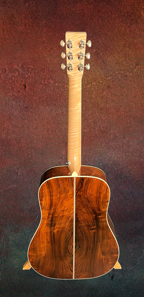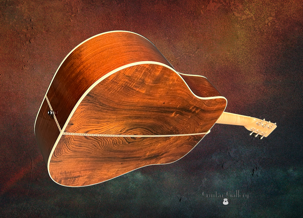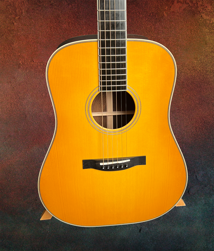 The Santa Cruz D Model has a unique tapered bracing, voiced to enhance the midrange and treble without compromising the bass volume. This voicing gives the D Model a more even balance and a greater versatility than traditionally braced dreadnoughts. The Santa Cruz Guitar Company Dreadnought Model was carefully conceived to accommodate the modern player’s need for sophisticated balance with more substance in midrange and treble. To deliver these qualities in the acceptable dreadnought-sized body required a very non-traditional approach, as compared to the factory offerings of the day. Using time honored lutherie skills, SCGC created a Trojan Horse – familiar on the outside, dangerous on the inside. SCGC’s innovative D Model remains a mainstay of artists who require acoustic volume without compromising the quality of higher frequencies.