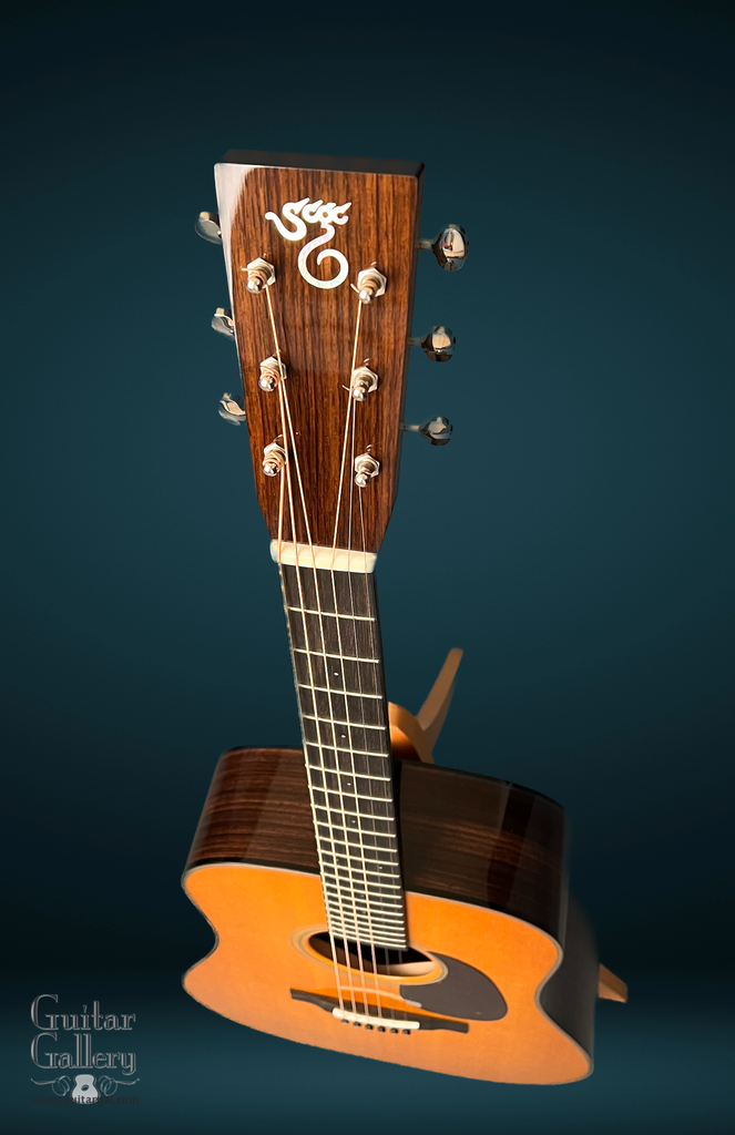 The Pre War design package honors its pre-WWII predecessors with an advanced X and scalloped top bracing. The D/PW’s powerful volume, overtones and rich presence is an epiphany to the uninitiated. Expect the predominant bass and throaty presence of the surviving pre-war antiques. There are no unnecessary design features on this model, simply the finest materials treated to SCGC’s state of the art lutherie.