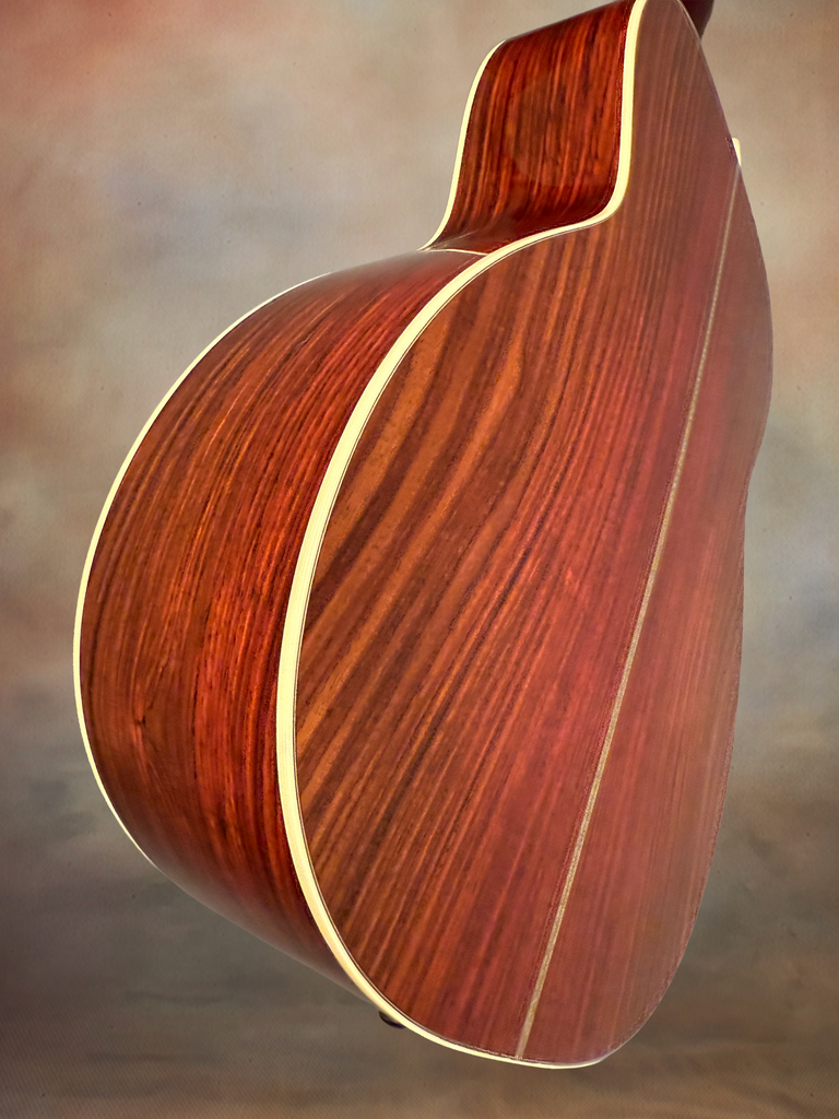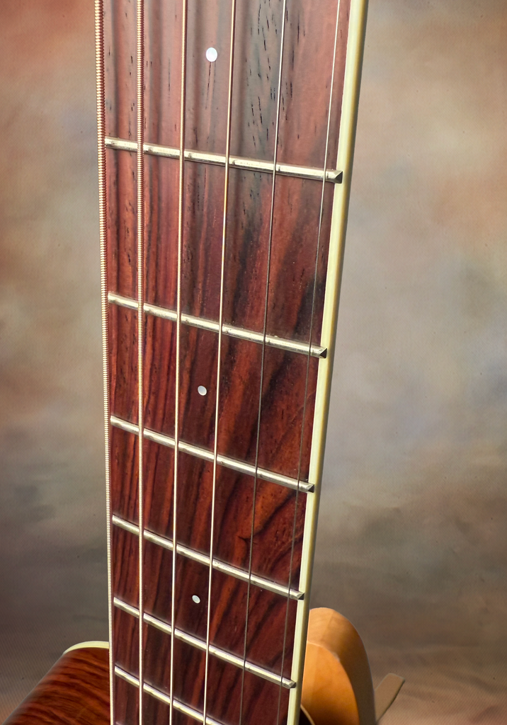 - Handsome CocoBolo bridge with Ebony pins/abalone dots