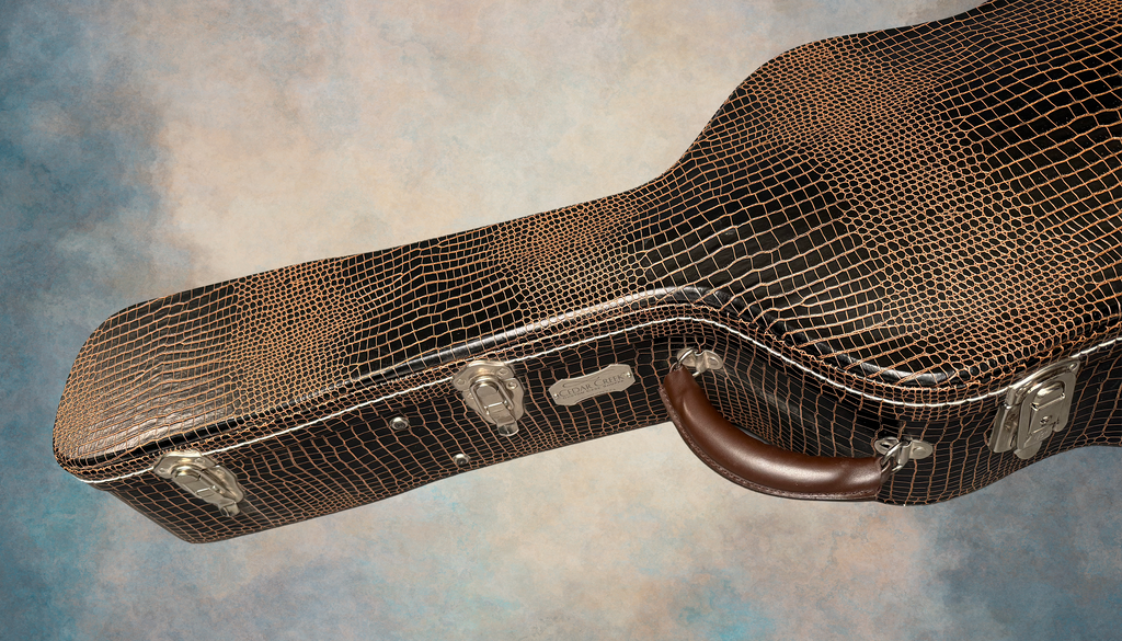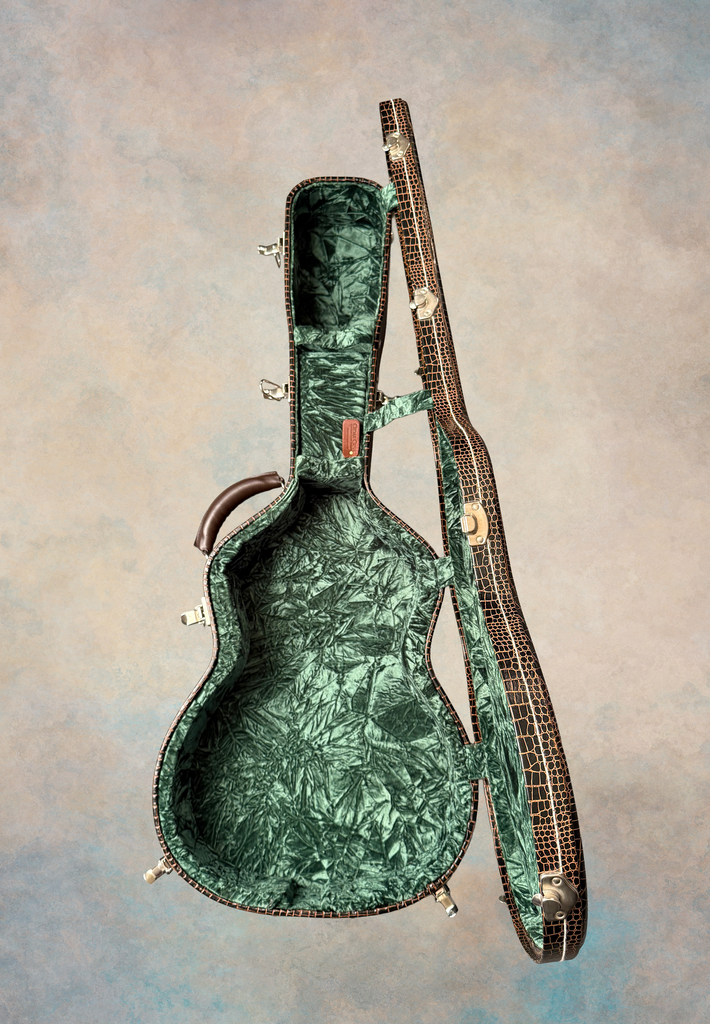 - We have upgraded the case to a fine brown alligator Cedar Creek case, custom made for a 00-14 fret guitar.