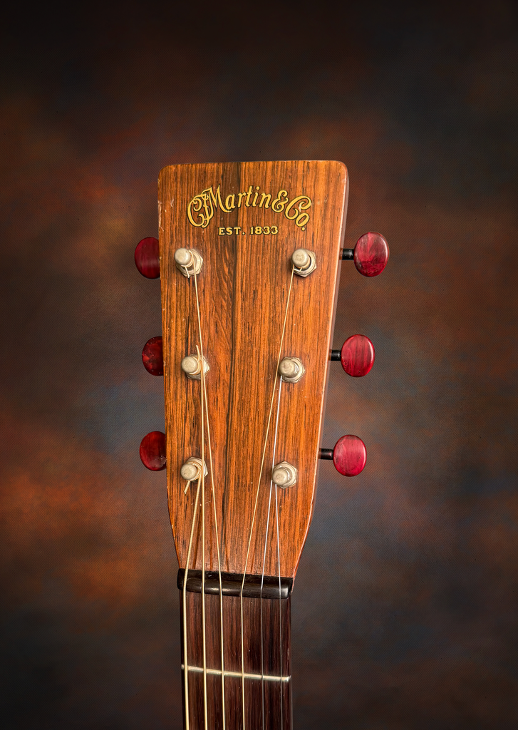 - Rosewood headstock faceplate with gold, Martin Script logo